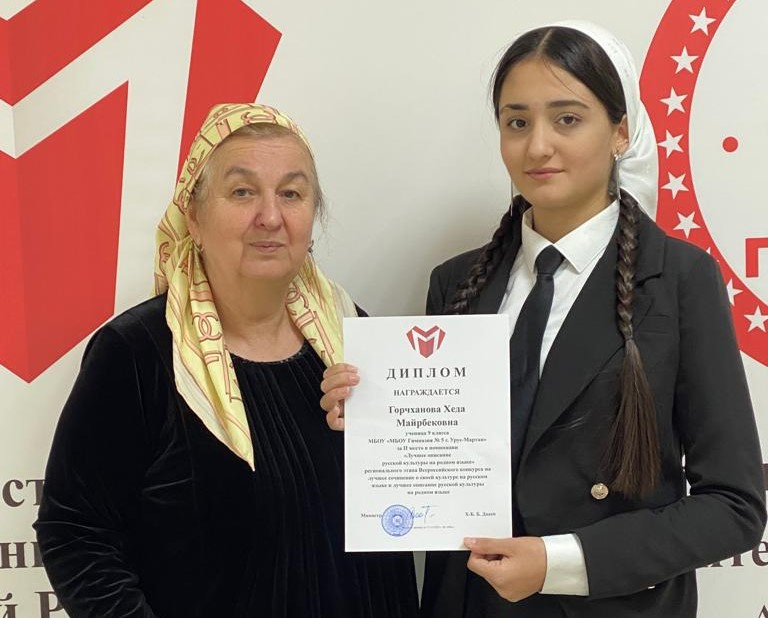 Так, II место в номинации «Описание русской культуры на родном (не русском) языке заняла учащаяся класса МБОУ «Гимназии №5 г. Урус-Мартан» Горчханова Хеда Майрбековна;