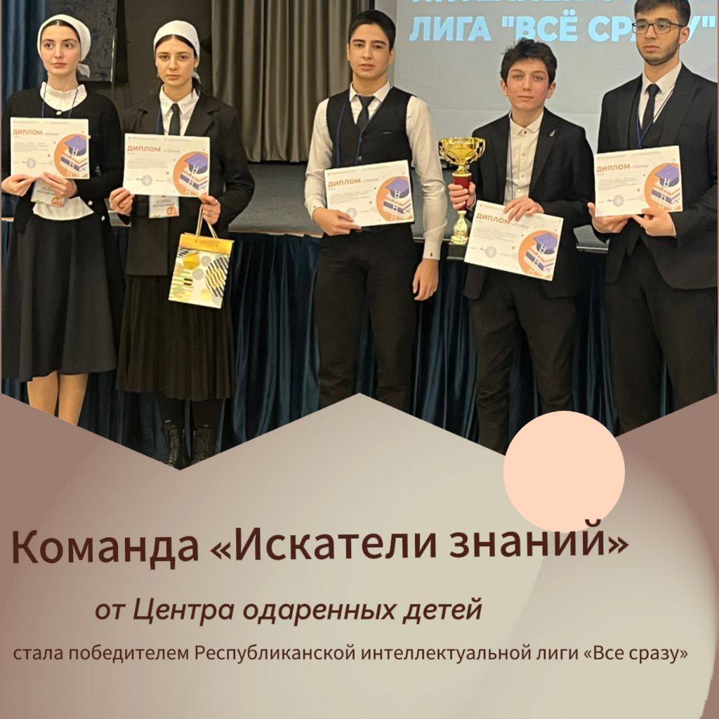 КОМАНДА "ИСКАТЕЛИ ЗНАНИЙ" ОТ ЦЕНТРА ОДАРЕННЫХ ДЕТЕЙ УРУС-МАРТАНОВСКОГО РАЙОНА СТАЛА ПОБЕДИТЕЛЕМ РЕСПУБЛИКАНСКОЙ ШКОЛЬНОЙ ИНТЕЛЛЕКТУАЛЬНОЙ ЛИГИ «ВСЕ СРАЗУ»